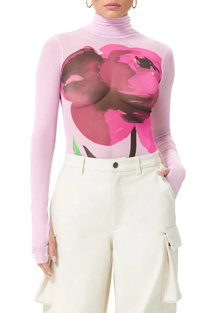 Zadie Mesh Turtleneck Top In Pink Placed Rose