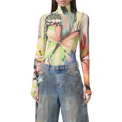 Zadie Print Turtleneck Mesh Top In Butterfly Tee