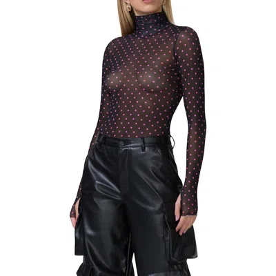 AFRM Zadie Print Turtleneck Mesh Top In Pink Micro Dot