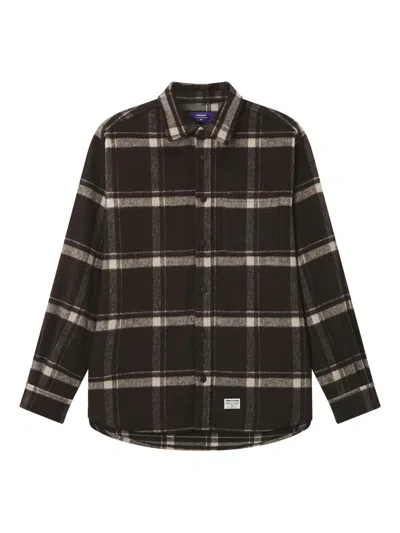 brown checked pattern chest pocket button fastening long sleeves point collar