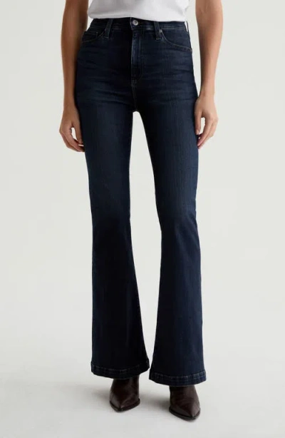 Made with recycled water and biodegradable dyes, these floor-grazing bootcut jeans are cut from Japanese denim with minimal fading for a sleek monochrome look. 32" inseam; 20" leg opening; 11" front rise; 15 1/2" back rise (size 29) Zip fly with button closure Five-pocket style 98% cotton, 2% polyurethane Machine wash, tumble dry Imported Women's Clothing