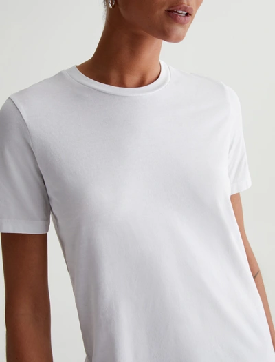 Our Jagger Crew Neck is the perfect short sleeve tee for your assortment of basic essentials. Featuring a clean white hue, this classic crew offers a 1X1 rib neckband. Seasonless, elevated, and luxuriousthis fabrication and fit provides unique versatility in styling your everyday look. Our Jersey Knit offers a luxurious comfort that is unrivaledknitted with both S-twist and Z-twist yarn to sustain longevity and stability, preventing unnecessary twisting and torquing. During the production process, the S-twist yarn is spun counter-clockwise creating a right-handed twill. The Z-twist yarn works in opposition, spinning clockwise for a left-handed twill. This oppositionwhen working togetheryields a softer, more durable fabrication and gives strength to the yarn making it more difficult to pull apart. Designed in 100% Cotton.