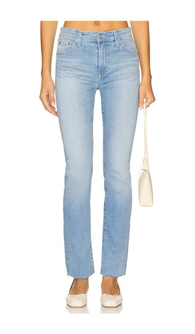 AG Jeans Mari in Blue. Size 33. Also in 23, 24, 25, 26, 27, 28, 29. AG Jeans Mari in Blue. Size 23, 24, 25, 26, 27, 28, 29. 98% cotton 2% spandex. Made in Mexico of imported materials. Machine wash. Zip fly with button closure. 5-pocket styling. Frayed hem. Denim with subtle stretch. 13 at the leg opening. AG-WJ1343. EML1875VN. AG has crafted beautiful clothing that reflects a modern design sensibility since 2000. From their revered AG-ed denim to their effortless sportswear, their clothes maintain a classic sophistication that transcends seasons.