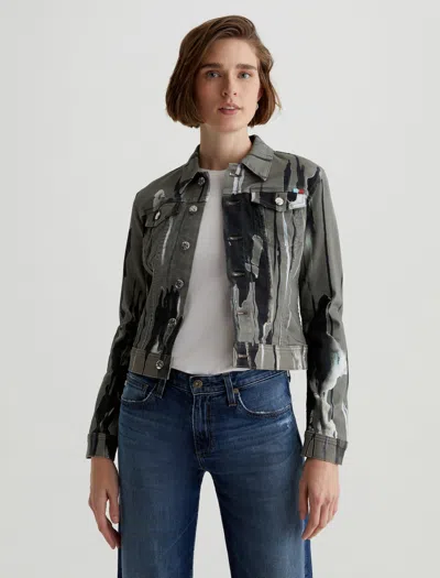 The Robyn Jacket is a women's trucker with a slim fit, flap pockets, and sturdy metal hardware. It's got a comfortable feel in 9.7 oz. Hyper-Soft Stretch Denim, an exclusive AG Cloud Soft Denim™ fabric that's designed to get softer with wear.About the Art Project print: This print is inspired by the freedom and ease that comes from painting and drawing with no true intention other than relaxing. Even if you're not a painter, when you pick up a brush and create seemingly meaningless lines, you can feel the peaceful effect it has on the mind. Watching the paint drop and flow across the canvas is fascinating and evokes feelings of happiness.AG Cloud Soft Denim™, Hyper-Soft Stretch Denim, 9.7 Oz. 56% Cotton, 19% Modal, 18% Lyocell, 6% Polyester, 1% Elastane