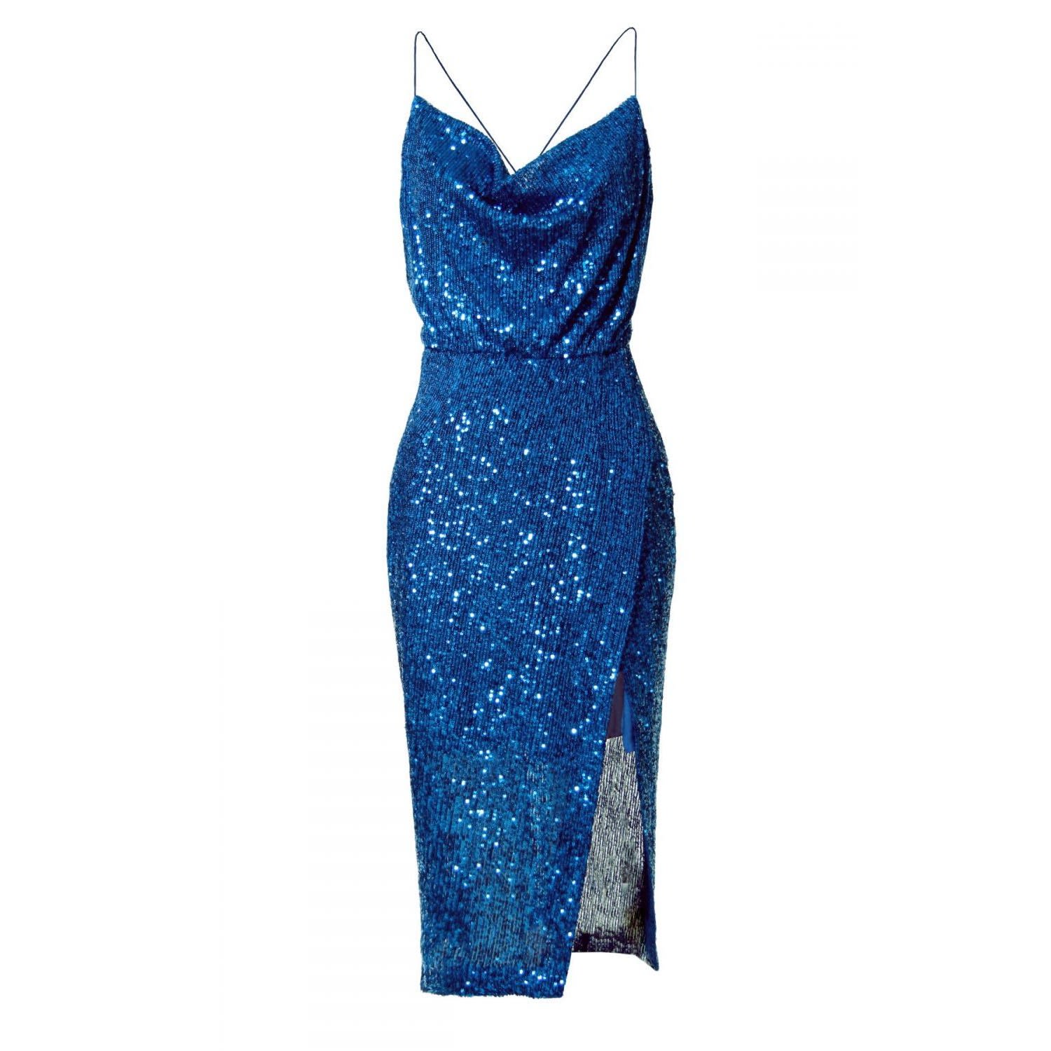 A midi dress embroidered with tiny shimmering sequins. Neckline with draping forming a soft wave. High cut on the left thigh. Very deep cut back with thin crossed straps. The dress is finished with a delicate, georgette silk lining. We want our clients to be happy with our products! For the best fit, please refer to the detailed table of our sizes, which you can find in the Size Guide tab, and our detailed sizing in the SIZING tab. Hand wash in 15 C in a mild detergent Do not iron COMPOSITION: 80% Modal, 20% Elastane Sequins: Nylon