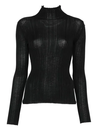 AGNONA Ribbed Turtleneck Top In Black