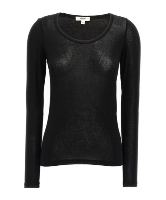 The AGOLDE 'Corey' sweater combines comfort and sophistication, crafted from a soft stretch lyocell blend for a lightweight and slightly sheer finish. A round neckline and long sleeves enhance its fitted shape, making it a versatile option for daily wear. Composition - 94% lyocell, 6% spandex Made in the USA True to size fit