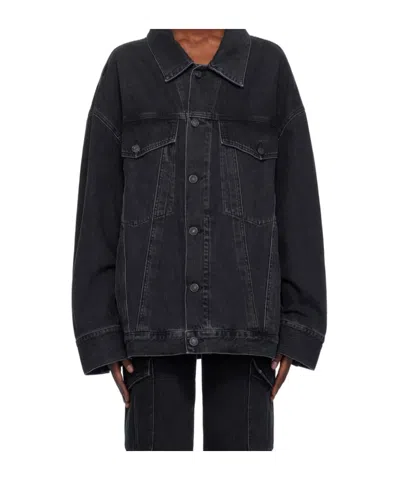 Lapel collar, button closure at front, flap and welt pockets and dropped shoulders.