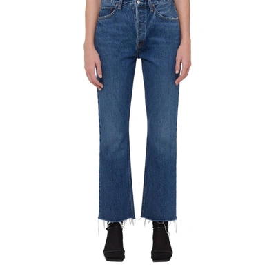 If you're looking for boot-cut, this is the jean for you.A must-have classic silhouette. Featuring a mid rise waist and ease through the leg, this jean finishes off with a 90's inspired subtle boot leg. With a vintage lived-in look, pair these with everything, from easy tees to chunky sweaters. Details & Care - 50% Polyester, 38% Cotton, 12% Rayon. Machine Wash. Looks Like - Dark, classic indigo with soft fading and a raw hem. Size & Fit - True to Size. Feels Like - Non-stretch, organic ferra dye cotton with sublte drape. Rise - 11 1/2". Inseam - 29 1/2". Leg Opening - 17 1/12". Model wears size 27. Model Height - 5'10"
