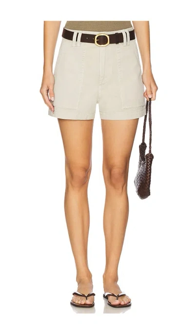 AGOLDE Kiva Short in Comb - Beige. Size 33 (also in 23, 24, 25, 26, 27, 28, 29, 30, 31, 32, 34). 100% regenerative cotton. Machine wash. Zip fly with button closure. Side seam pockets. Back flap pockets. Midweight denim fabric. Shorts measure approx 15 in length. AGOL-WF195. A9241-1626. About the designer: AGOLDE aims to push the boundaries of premium denim by invoking comfort, design, and sustainability into each product. Inspired by the perfect vintage pair updated with a fresh modern reinterpretation, each silhouette offers an authentic and irreverent attitude that hails from its Los Angeles based studio. Globally sourced luxurious fabrics designed with an irreverent attitude and crafted with meticulous attention to detail is rooted by yesterday and today's youth culture and creatives. The brand's dedication to innovative direction is driven by environmental consciousness while mastering quality, fit and individuality undoubtedly placing the brand at the forefront of a new standard set for luxury denim.