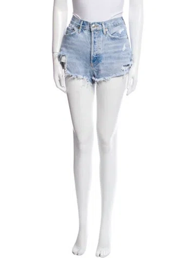 AGOLDE Shorts Blue High-Rise Raw-Edge & Distressed Accents Light Wash Slit Pockets Button Closure Fit: Shorts by AGOLDE typically fit true to size. | AGOLDE Mini Shorts in Blue, Women's US 25 | XS