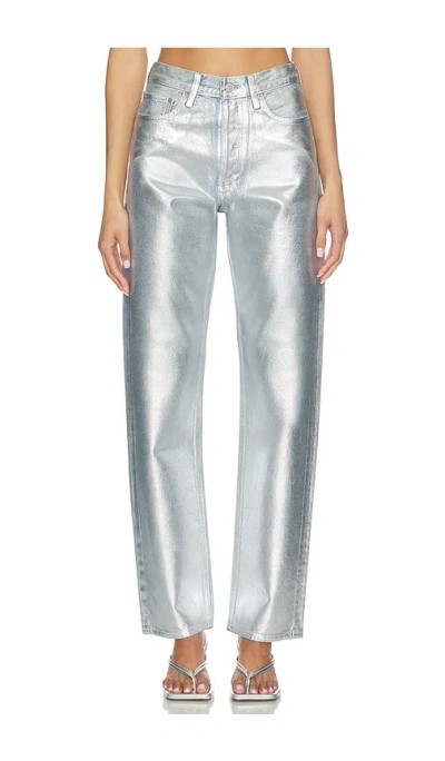 AGOLDE 90's Mid Rise Loose Fit Jeans in Metallic Silver. - size 30 (also in 23, 24, 25, 26, 27, 28, 29) AGOLDE 90's Mid Rise Loose Fit Jeans in Metallic Silver. - size 30 (also in 23, 24, 25, 26, 27, 28, 29) 100% regenerative cotton. Dry clean only. Button fly closure. 5-pocket design. Intentional fading. Heavyweight coated denim fabric. 16 at the leg opening. AGOL-WJ789. A294-1141. Based in downtown Los Angeles, AGOLDE is a premium denim label dedicated to highlighting youth culture throughout the decades. Instead of simply replicating your favorite styles from the past, they set out to recreate them with a contemporary approach in mind. The styles may emit an irreverent attitude, but AGOLDE is serious when it comes to quality. They use only the most innovative fabrics sourced from around the world and facilitate all product development to create denim of the highest caliber.