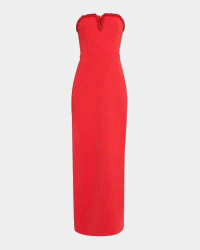 AIDAN MATTOX Strapless Beaded Crepe Column Gown In Red