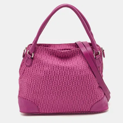 AIGNER Fuchsia Signature Canvas And Leather Zip Tote In Pink
