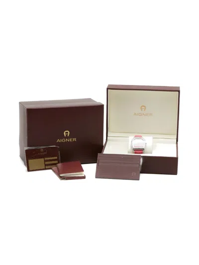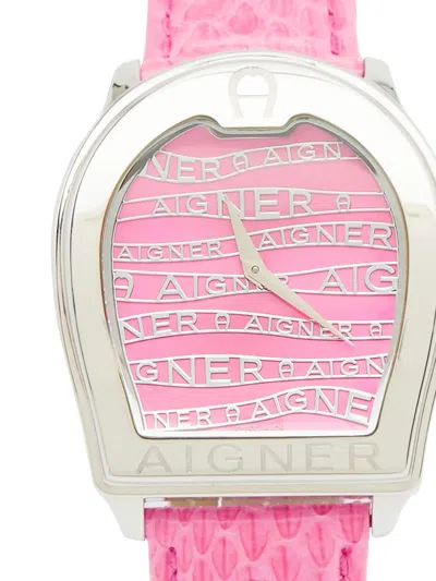 silver-tone quartz movement water resistance pink leather strap This item comes with a standard two-year warranty from the brand. Condition: EXCELLENT. This previously owned item is in near-perfect condition with no signs of damage or use.