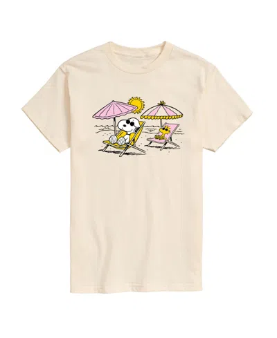 AIRWAVES Men's Peanuts Snoopy Beach Day Short Sleeve T-shirt In Beige,khaki