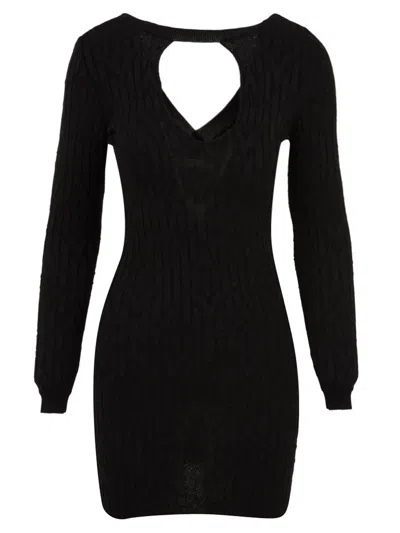 Rib-knit midi dress with front porthole neckline. Fitted fit, long sleeves and feminine cut. A minimal garment with cut-out detail that enhances the silhouette.. . 40% VISCOSE 35% LYOCEL 13% MERINO WOOL 6% METALIZED FIBER 5% POLYAMIDE 1% ELASTANE. .