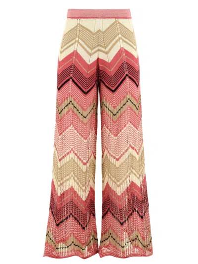 Multicolor striped knit palazzo pants. The wavy stripe pattern adds movement and vibrancy to the garment, making it a must-have for those who like to dare with elegance. 85% COTTON 11% POLYAMIDE 4% METALLIC FIBER.