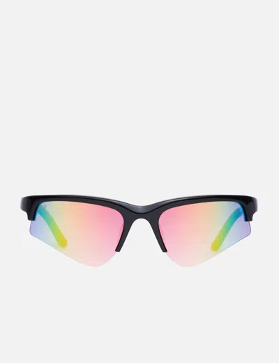 Akila Crux Wraparound acetate frame Streamlined shape Recycled nylon lenses 100% UV protection Color: Black / Rainbow Mirror