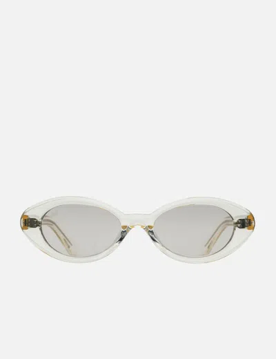 Akila Daisy Oval frame Rounded edges Double-riveted hinge Metal temple cores Recycled nylon lenses 100% UV protection Color: Crystal / Grey