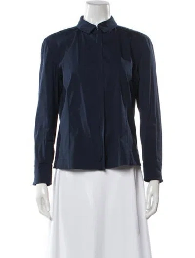 Akris Biker Jacket Blue Stand Collar Zip Closure Fit: Jackets by Akris typically fit true to size. | Akris Biker Jacket in Blue, Women's L