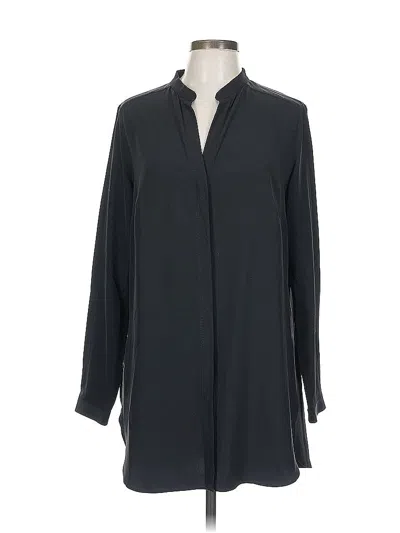 Pre-owned Long Sleeve Silk Top Black Mock Neckline Tops