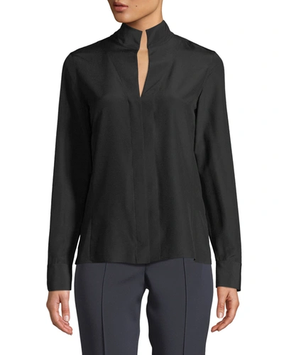 AKRIS Split-neck Silk Button-front Blouse In Black