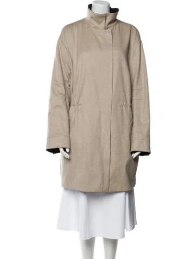 Akris Wool Coat Neutrals Stand Collar Knee-Length Fit: Coats by Akris typically fit true to size. Unfortunately, due to restrictions, this item may not be eligible for shipping in all areas. | Akris Wool Coat in Neutrals, Women's US16, FR48 | XXL