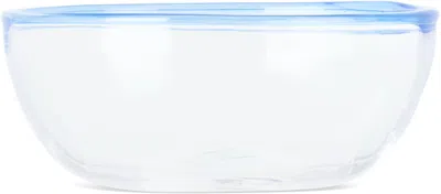 Mouth-blown Bohemian glass bowl. · Rim in blue · Logo etched at base · Dishwasher safe · H5 x D12 cm Part of the Peter collection. Supplier color: Aquamarine rim