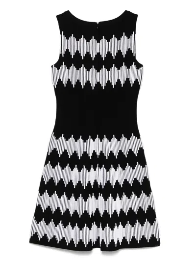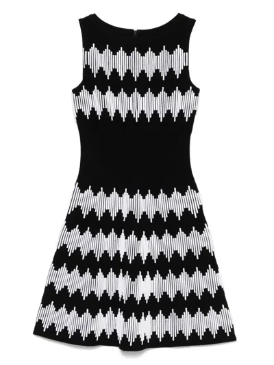 circa 2000s black/white wool blend stretch-design all-over graphic print crew neck sleeveless concealed rear zip fastening flared skirt straight hem Condition: EXCELLENT. This previously owned item is in near-perfect condition with no signs of damage or use.