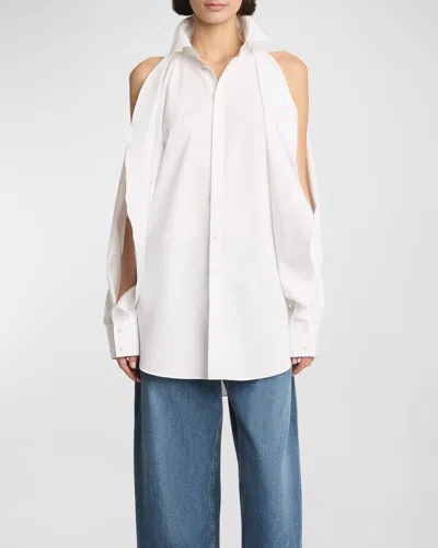 ALAÏA Cold-shoulder Button Down Blouse In Blanc