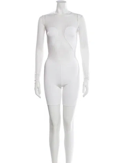 Alaïa Romper White Long Sleeve with Crew Neck Fit: Jumpsuits and Rompers by Alaïa typically fit true to size. | Alaïa Crew Neck Romper in White, Women's US4, FR36 | S