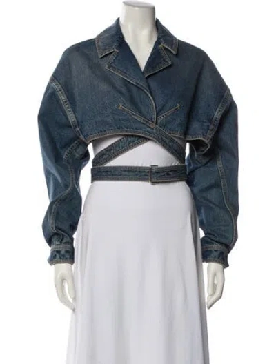 Alaïa Denim Jacket Blue Pointed Collar Belted Closure Fit: Jackets by Alaïa typically fit true to size. | Alaïa Denim Jacket in Blue, Women's US10, FR42 | L
