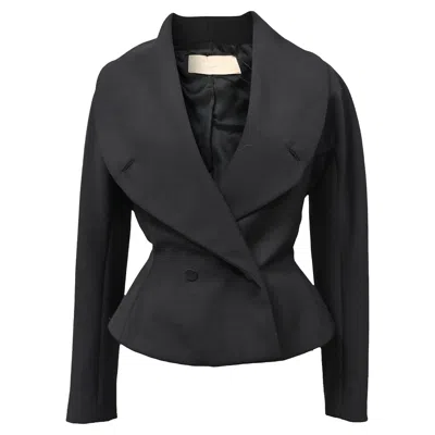 This Alaïa Double-Breasted Jacket is the epitome of sculptural elegance. Crafted in crisp black polyester, it features a refined shawl collar, long sleeves, and a sharply tailored silhouette that defines the waist with architectural precision. Sleek yet commanding, it's a modern power piece that elevates any ensemble.Alaïa Double-Breasted Jacket in Black PolyesterCondition - ExcellentSigns of wear - No visible sign of wear., Unused or used once, but as good as new.Packaging - NoneColor - blackMaterial - Polyester Size - FR 36Measurements - Length - 575; Chest - 425SKU - NAPPUHKCL556221W