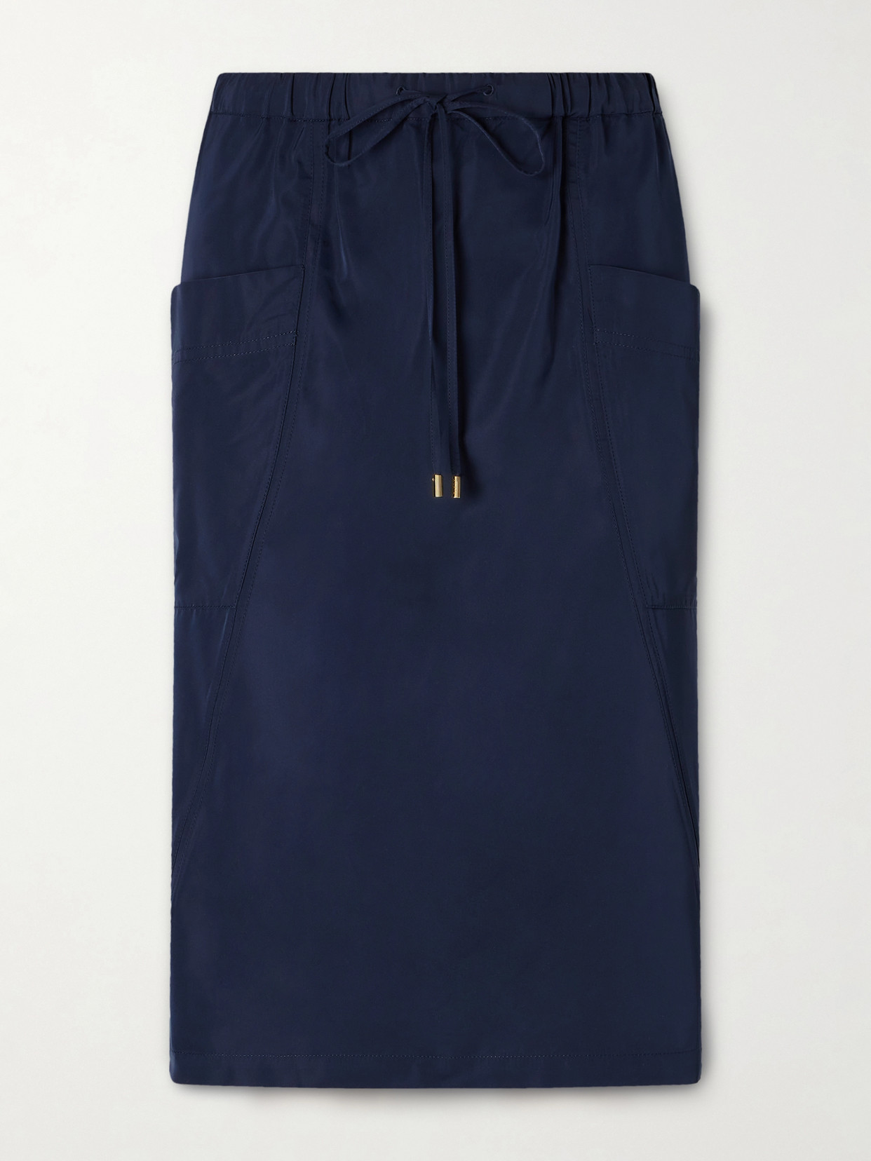 Classic cut, structured silhouette, with drawstring waist and two front pockets.