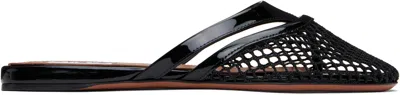 ALAÏA Fishnet And Leather Flip Flops Flat Mules Shoes In Multi