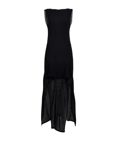 ALAÏA Ladder Knit Sleeveless Ruffle-slits Midi Dress In Black