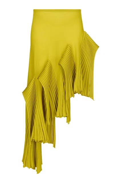 Founded by Azzedine Alaïa; today the maison; under the direction of Pieter Mulier; continues the revered couturier's uncompromising vision which champions masterful cuts that accentuate the female form.Asymmetrical skirt knitted in crisp viscose knit with leaf-shaped godet. High waisted; elasticated waistband; asymmetrical hemline.