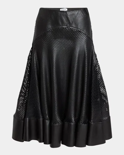 ALAÏA Perforated Leather Flare Skirt In Black