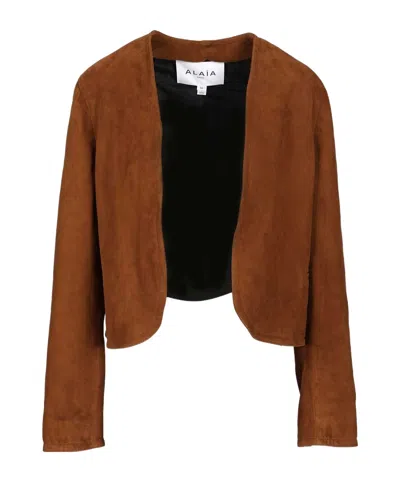 ALAÏA Short Suede Blazer Jackets Brown In Multi