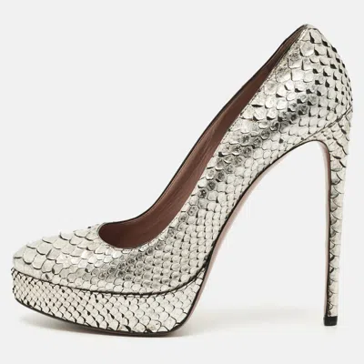 Pre-owned Silver/gold Python Round Toe Platform Pumps Size 40.5