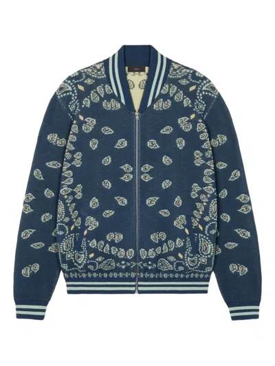 light blue bandana pattern front zip fastening long sleeves ribbed cuffs and hem