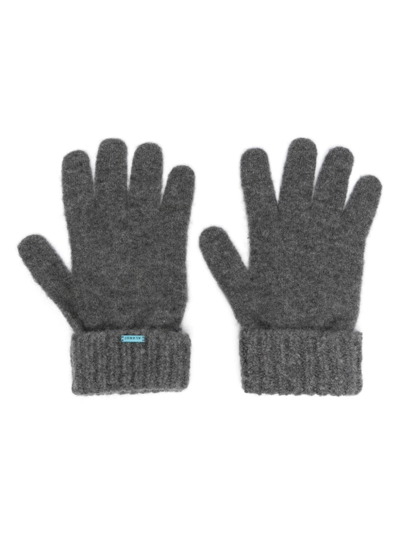 Finest cashmere-silk gloves from ALANUI featuring grey, cashmere-silk blend, ribbed trim, logo plaque and turn-up hem.