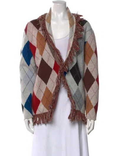 Alanui Wool Cardigan Black Printed Fringe Trim Accent Long Sleeve with V-Neck Hook & Eye Closure at Front Fit: Knitwear by Alanui typically fit true to size. | Alanui Wool Printed Sweater in Black, Women's S
