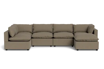 General Dimensions: 158.5"W x 39"H x 79"D Seat Height: 19" Seat Depth: 29" Arm Height: 31" Total Weight(lbs): 598 Box Dimensions: Corner Box 1 (2): 43.5" x 43.5" x 15" Corner Box 2 (2): 43" x 17" x 7" Armless Box (3): 43.5" x 37.5" x 14.25" Ottoman Box (1): 37.5" x 37.5" x 13.25" Shipping Enjoy the convenience of FREE shipping to your doorstep, no matter the size of your order. Tracking information will be sent to you as soon as your order leaves our warehouse.We deliver to the 48 contiguous states & D.C. For additional details please visit our Shipping and Delivery page. Return Policy We take great pride in the quality and comfort of our goods. If for any reason you are not satisfied with your purchase, you may return the item(s) within 30 days of receiving the order.In order to offer our great pricing + fast and free shipping we charge a return shipping fee equal to 10% of what you paid for the product, with the original packaging intact. If you don't have the original packaging, the fee is 20% of the paid value. The fee is always capped at $200. Of course, defective or damaged orders are covered by our warranty and aren't subject to any return shipping fees. In the event that an item arrives defective or damaged, please let us know immediately upon receipt and we will make it right.For further assistance please send an email to hello@albanypark.com or call our customer service department at 1.800.681.5831 Featuring a pillow seat cushion and extra-deep frame, the Kova Pillow Cushion is the perfect choice for those looking for laid-back comfort. Its modular design adapts seamlessly to any space, allowing for easy reconfiguration to suit changing layouts and needs. The plush pillow seat cushions create a relaxed, inviting feel, adding a sense of casual luxury that’s perfect for lounging. Made with hypoallergenic, vegan materials, these cushions offer exceptional sink-in comfort without sacrificing durability, making the Kova Pillow Cushion a chic choice for any home. Features: Our newly improved cloud-like cushions maximize comfort with an exceptionally soft, hypoallergenic microfiber fill Industry-best lead time for custom furniture, ships in days from our factory in North America New anti-slip seat cushions stay in place with every sit Removable, cleanable seat cushions with kid and pet-friendly fabric options let you lounge without worry Back cushions are fully reversible and cleanable for a quick, easy refresh Sturdy frame crafted from durable contract-grade wood Sofa base combines foam-topped comfort with high performance suspension 100% vegan and cruelty-free Shipped in easy-to-move, 100% recyclable boxes Assembly Instructions Assembly Video