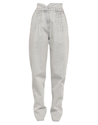 denim, darts, metal applications, solid colour with appliqués, colored wash, multipockets, high waisted, zipper closure, stretch , Color: Light grey , Size: 4