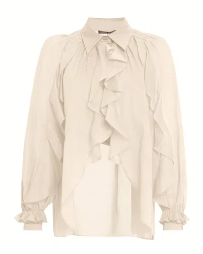 ALBERTA FERRETTI Ruffle High-low Button-down Blouse In Beige