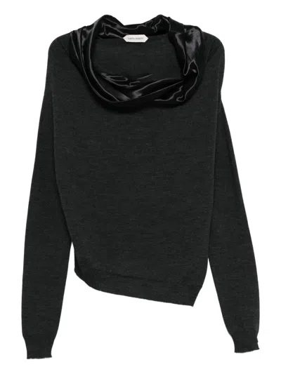 ALBERTA FERRETTI Satin-trimmed Wool Sweater In Gray