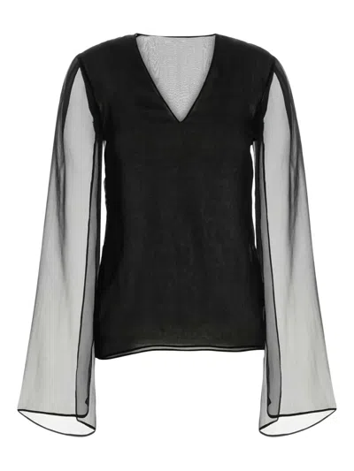 ALBERTA FERRETTI Sheer-sleeve Silk Blouse In Black