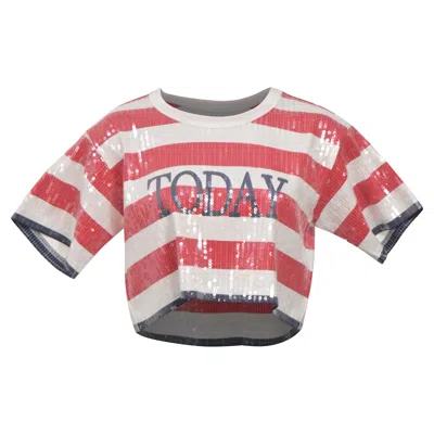 Stripe Sequined Cropped Top In Red And White Cotton In Multi